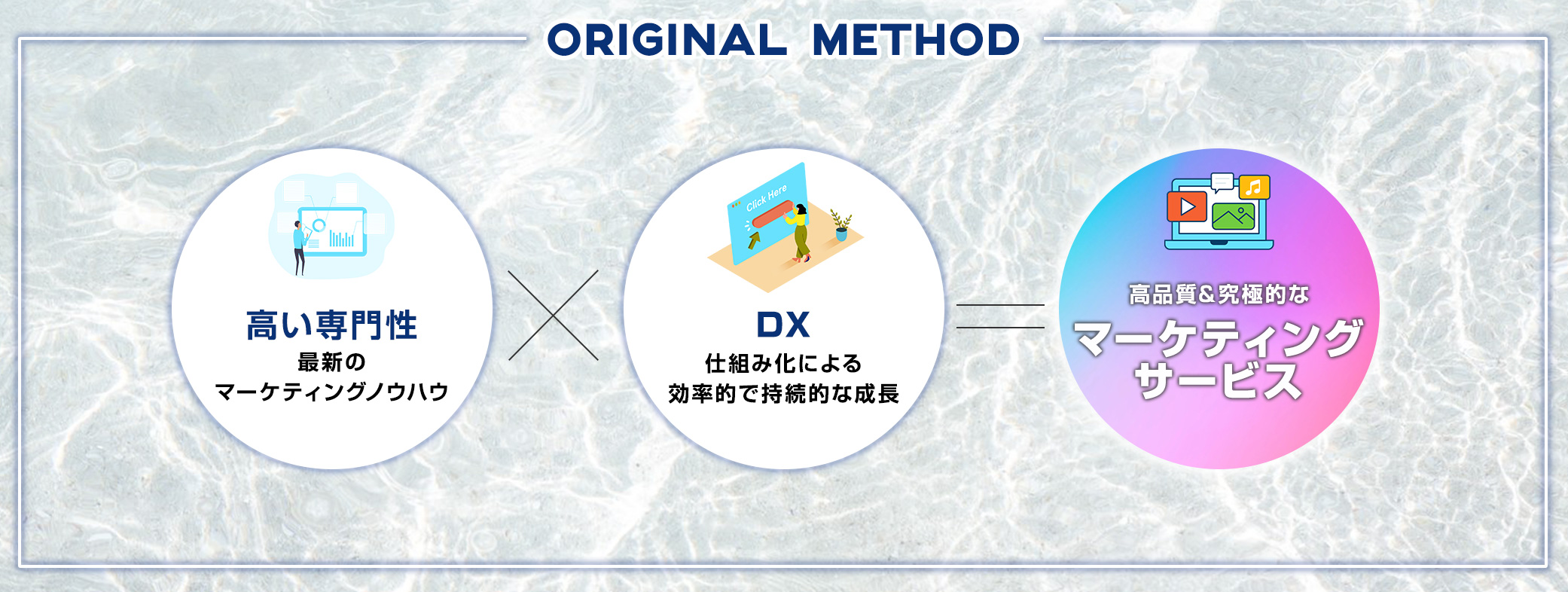 企業の事業戦略にあわせ、デジタルマーケティングの戦略設計から、集客施策、広告運用まで、マーケティング投資対効果の最大化に貢献いたします。